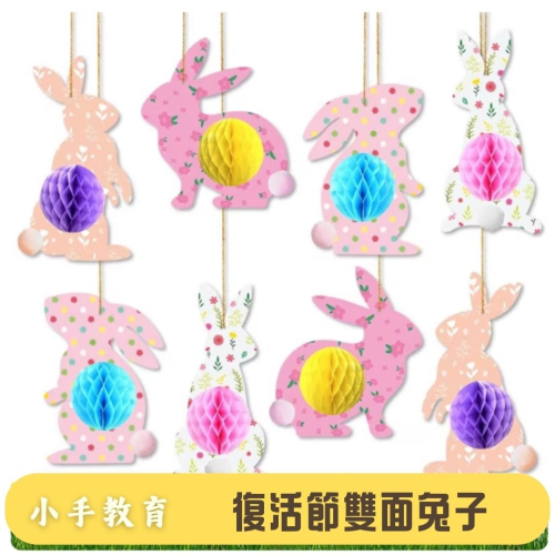 復活節立體粉紅兔蜂巢球空中吊飾(4隻)