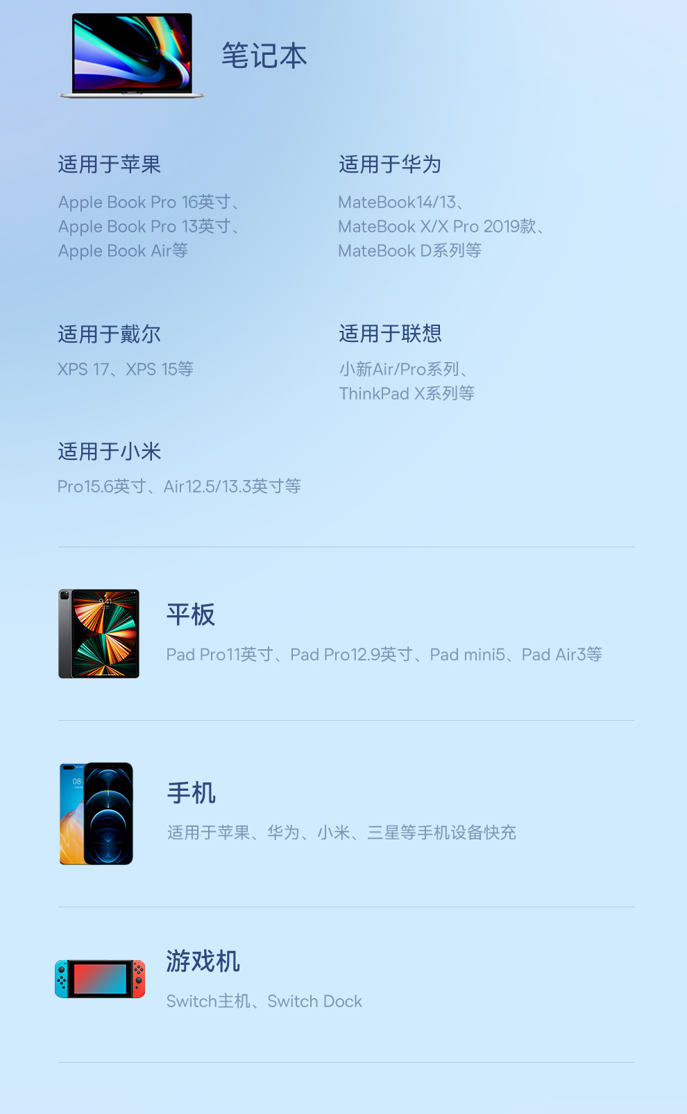 USB輸出:5V/3A 5V/4.5A 9V/3A 12V/3A 20V/3A