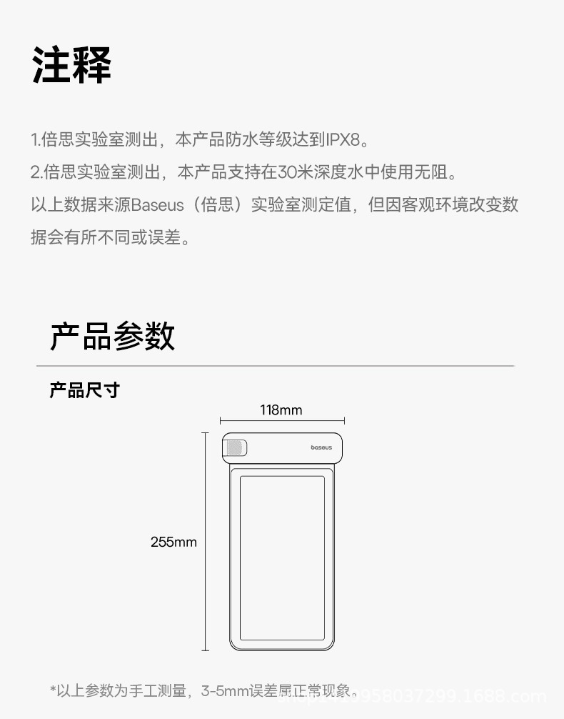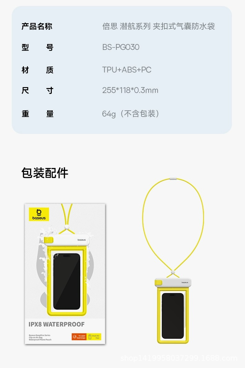 產品名稱:倍思潛航系列夾扣式氣囊防水袋
