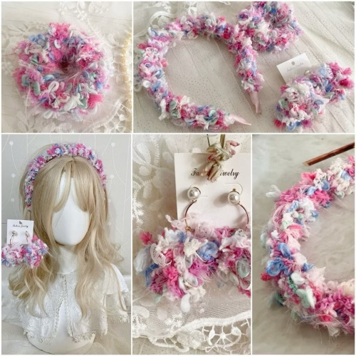 ~~手工編織紗線耳環 髮箍 大腸圈~~~
