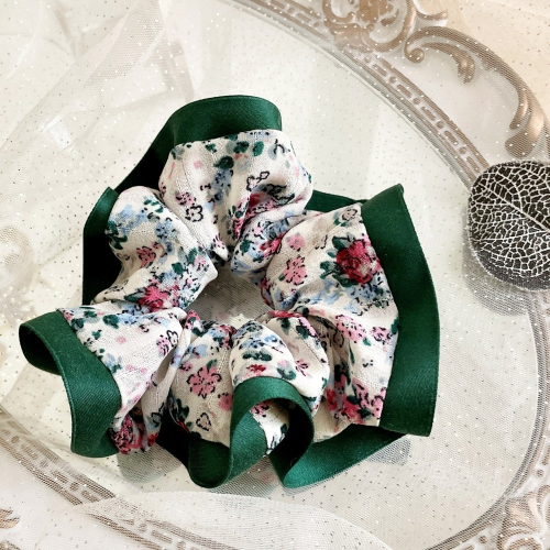 滾邊大腸圈/ 綠色髮圈 大腸髮圈 髮束 髮繩 髮飾 頭飾 禮物