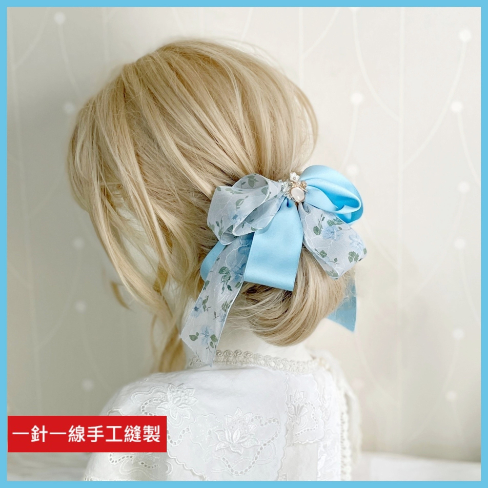 *哈娜髮飾*手工仙女夾 淺藍 大蝴蝶結 香蕉夾 鯊魚夾 髮圈 馬尾夾 髮夾 相交夾 三爪夾 包頭抓夾 髮叉 髮梳 邊夾