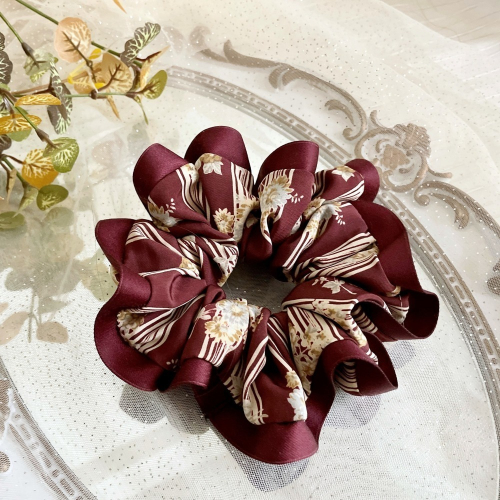 滾邊大腸圈/ 咖紅髮圈 大腸髮圈 髮束 髮繩 髮飾 頭飾 禮物