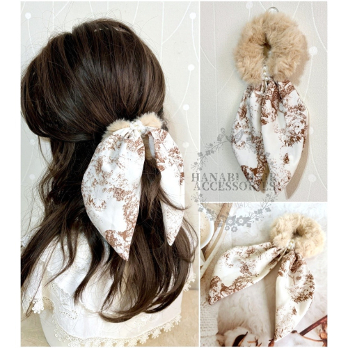 *哈娜髮飾*手工絲巾式蝴蝶結大腸圈~垂墜毛線髮圈 甜甜圈髮束 髮繩 髮飾 頭飾 禮物 生日大腸髮圈 客製 訂製