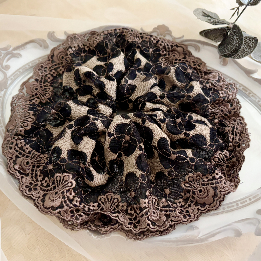 *哈娜髮飾*法式刺繡蕾絲大腸圈/ 髮圈 大腸髮圈 髮束 髮繩 髮飾 頭飾 禮物