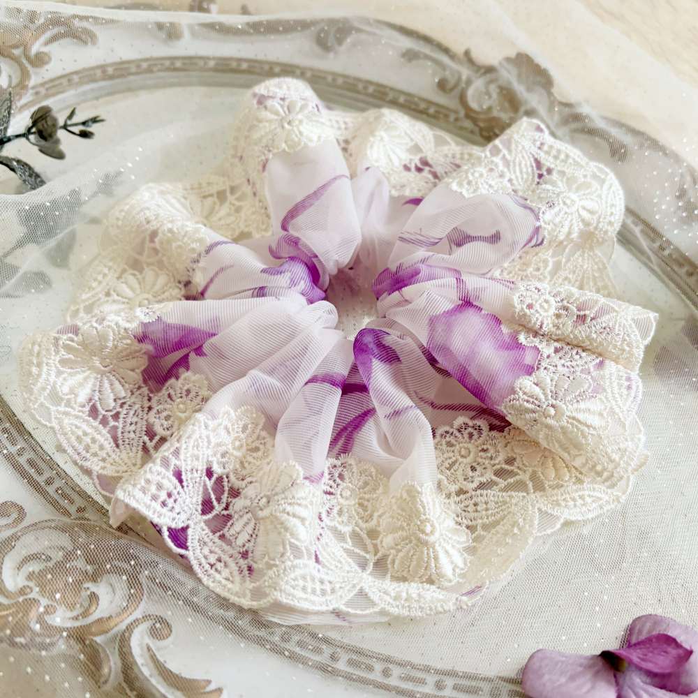*哈娜髮飾*法式刺繡蕾絲大腸圈/ 髮圈 大腸髮圈 髮束 髮繩 髮飾 頭飾 禮物