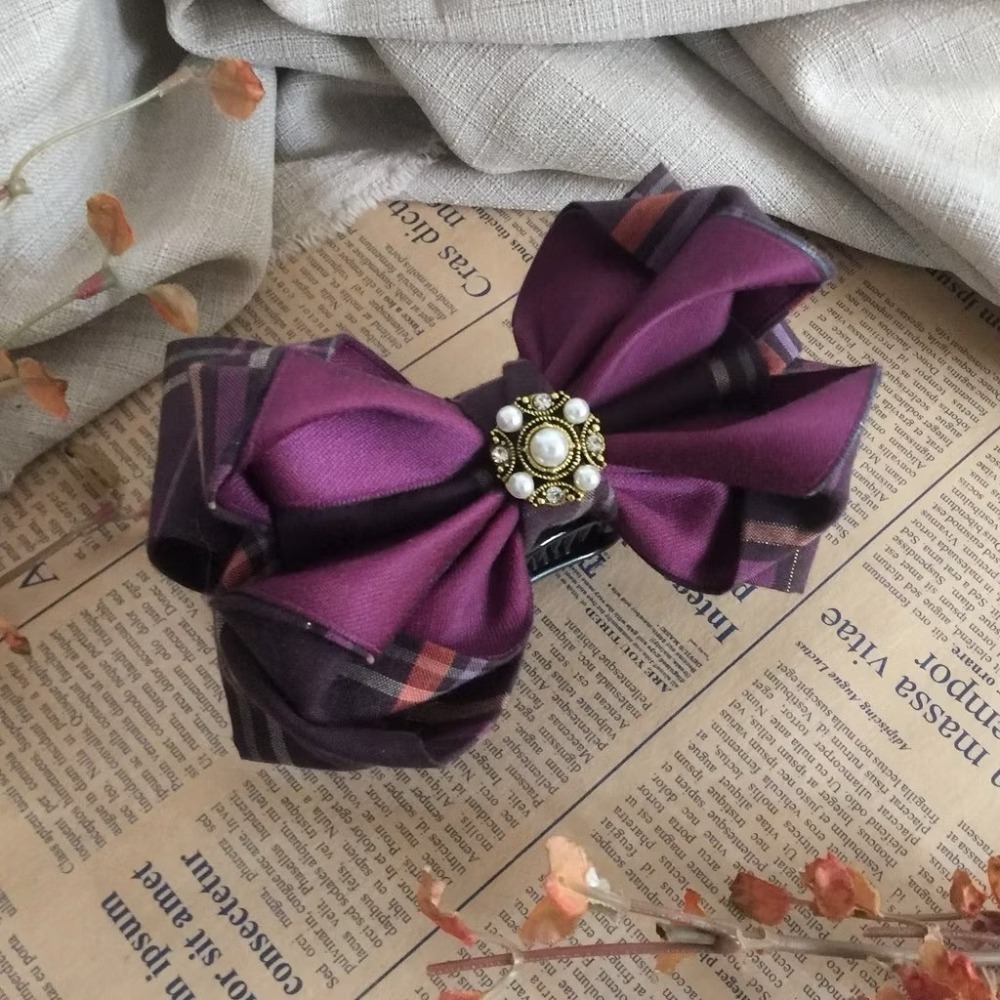 *哈娜髮飾*手工立體蝴蝶結/紫格紋 香蕉夾 相交夾 鯊魚夾 邊夾 髮圈 大腸圈 髮梳 髮叉 髮夾 壓夾 馬尾夾 彈簧夾