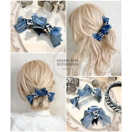 牛仔流蘇釘珠雙蝴蝶結 #髮夾