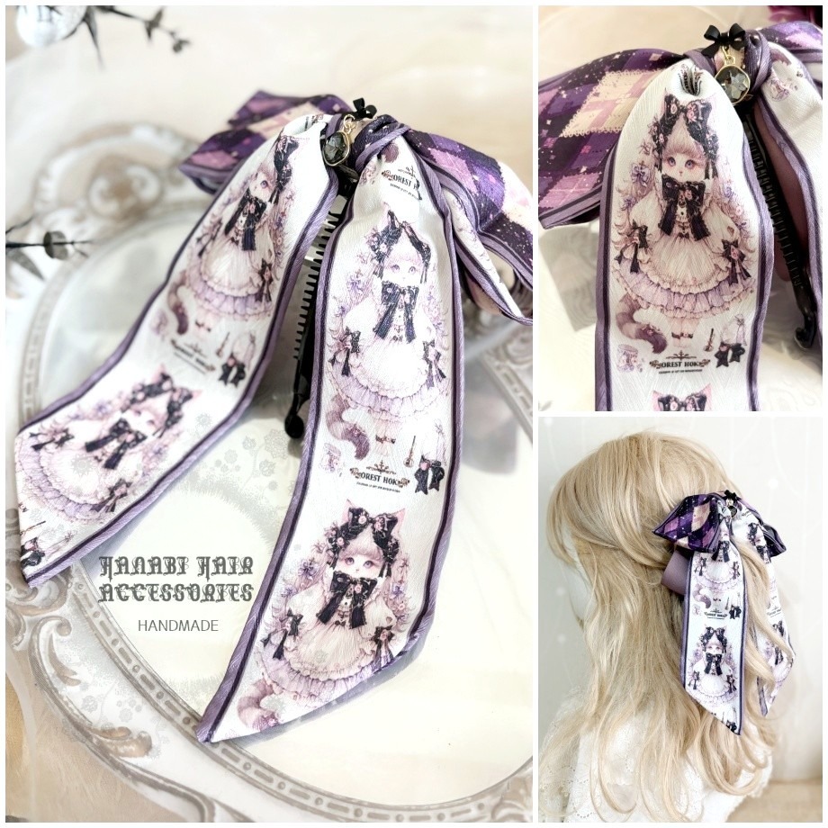 超美😍法式復古-質感撞色絲巾 #仙女夾---暗黑系紫貓
