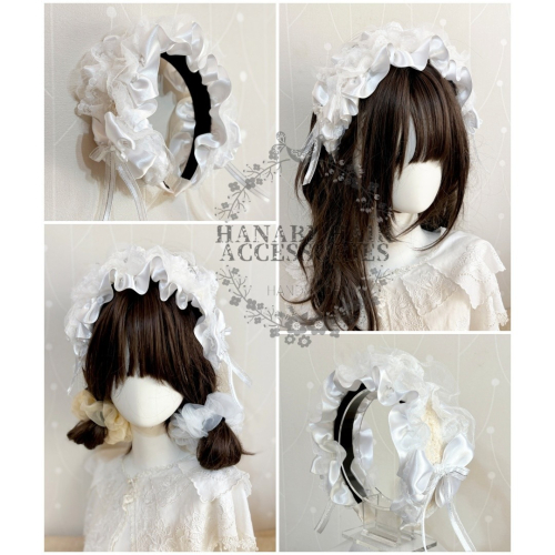 *哈娜髮飾*荷葉皺褶髮箍 白色 蘿莉塔 髮帶式寬版髮箍 髮圈 髮窟 頭箍 頭巾 高顱頂髮窟 頭飾 手工髮飾