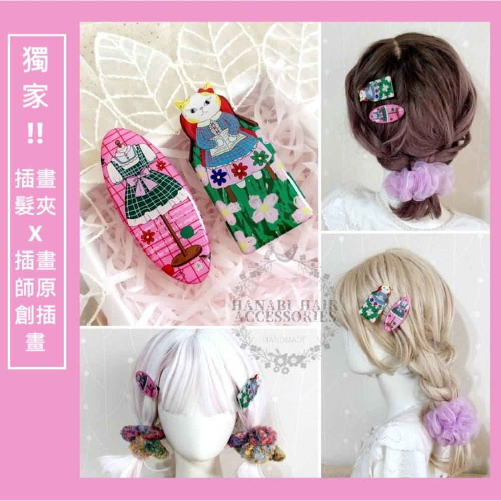*哈娜髮飾*獨家插畫髮夾 / 貓咪裁縫師 瀏海夾 滴膠壓克力壓夾 H夾 鴨夾 頭飾 髮飾 壓克力 童話風