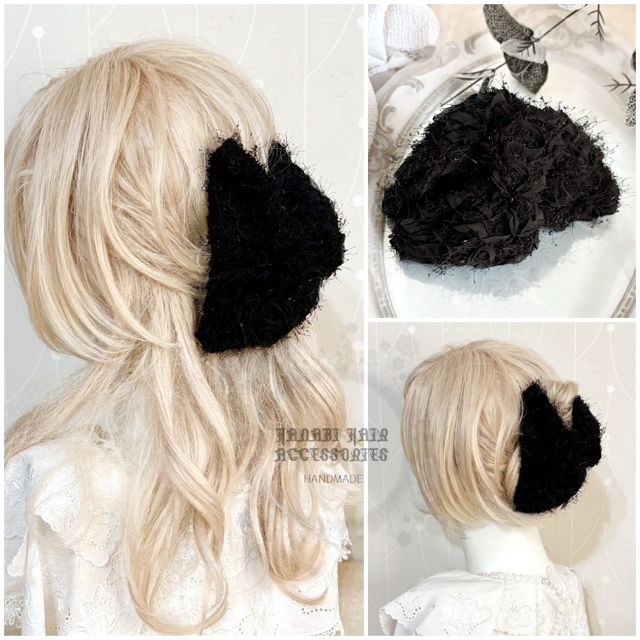 *哈娜髮飾*三角抓夾 /水餃超大鯊魚夾 黑色小香 髮量多 馬尾 髮夾 包頭 公主頭 盤髮 頭飾 手工髮飾 獨家