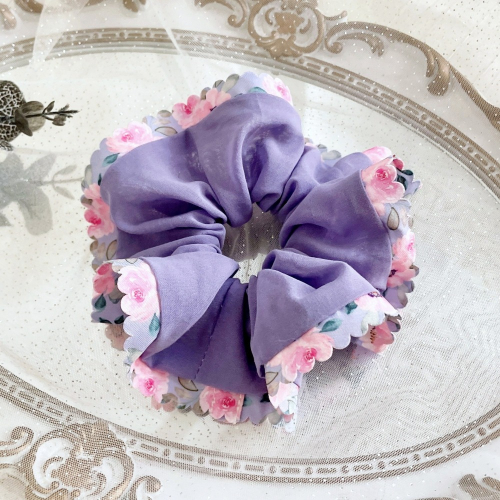 滾邊大腸圈/ 紫色髮圈 波浪邊 大腸髮圈 髮束 髮繩 髮飾 頭飾 禮物 髮量多 髮量少 手工