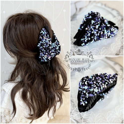 *哈娜髮飾*三角抓夾 /水餃超大鯊魚夾 炫彩亮片 髮量多 馬尾 髮夾 包頭 公主頭 盤髮 頭飾 手工髮飾 獨家