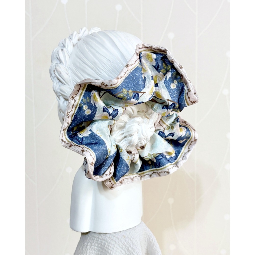 布藝大腸圈/ 絲巾質感 緞面藍白花 髮圈 大腸髮圈 髮束 髮繩 髮飾 頭飾 禮物 髮量多 髮量少