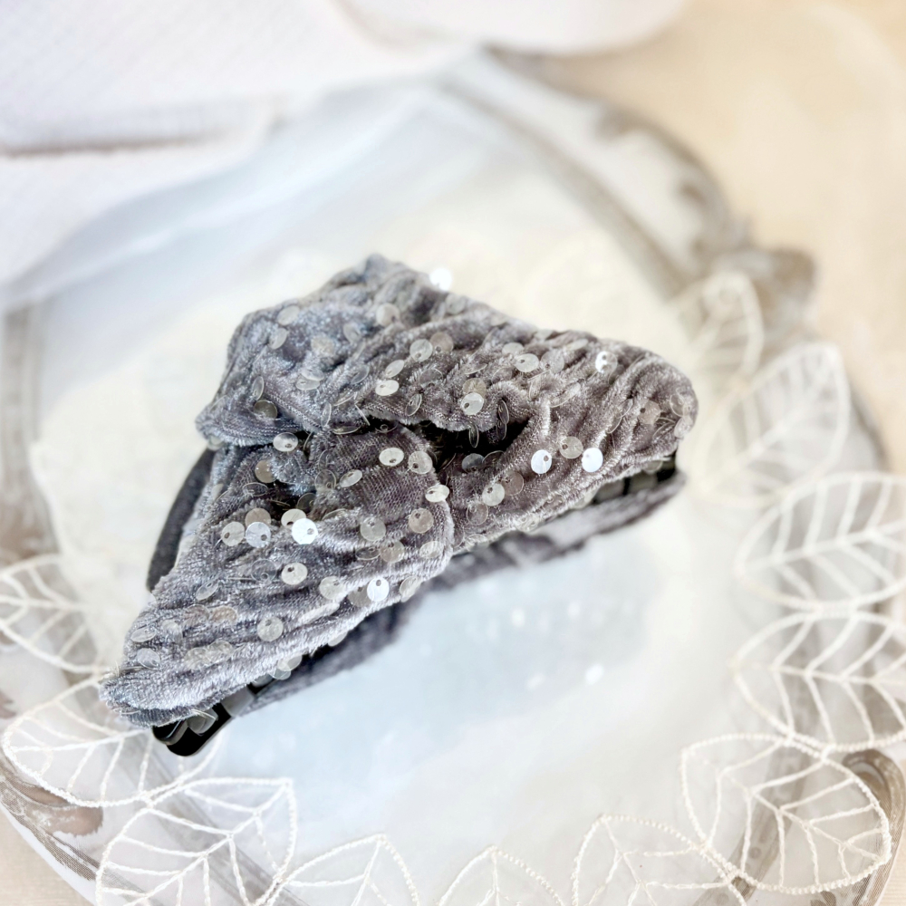 *哈娜髮飾*三角抓夾 /水餃超大鯊魚夾 灰色亮片 髮量多 馬尾 髮夾 包頭 公主頭 盤髮 頭飾 手工髮飾 獨家