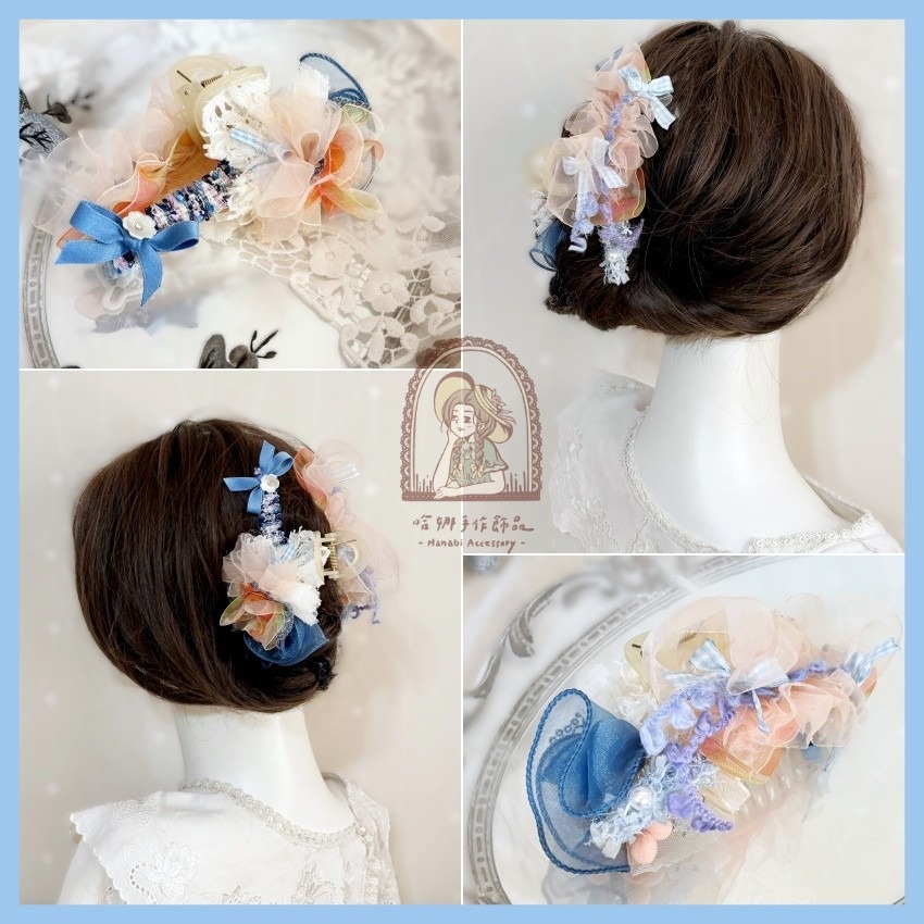 *哈娜髮飾*手工紗線髮夾/毛線鯊魚夾 超大抓夾 拼接 髮量多 髮飾 飾品 新娘頭飾 盤髮 丸子頭 包頭 大鯊魚夾