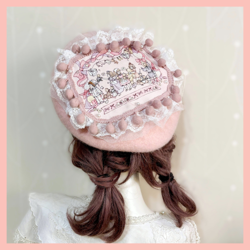 手工羊毛 #貝雷帽 ---------女孩與玩偶熊