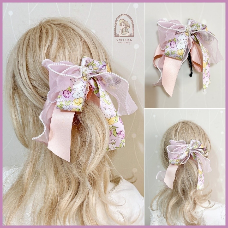 *哈娜髮飾*獨家手工仙女夾 粉紅兔 珍珠紗 大蝴蝶結 香蕉夾鯊魚夾 髮圈 馬尾夾 髮夾 相交夾 三爪夾 包頭抓夾 髮叉
