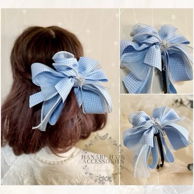 *哈娜髮飾*獨家手工仙女夾 千鳥格 珍珠紗 大蝴蝶結 香蕉夾鯊魚夾 髮圈 馬尾夾 髮夾 相交夾 三爪夾 包頭抓夾 髮叉