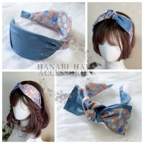 *哈娜髮飾*蝴蝶結髮箍 拼接藍 髮窟 頭箍 髮飾 頭飾 禮物 生日 法哭 髮哭 髮圈 頭帶 髮帶 髮枯 獨家手工