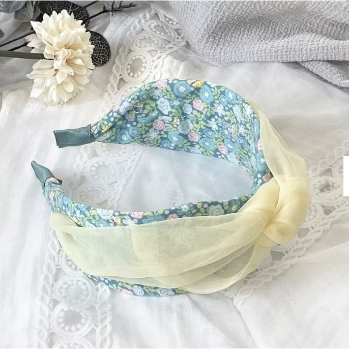 *哈娜髮飾*多用綁帶髮箍 黃綠碎花 打結頭箍 交叉髮窟 編織頭飾 髮哭 寬版 法哭 蝴蝶結髮圈 髮枯 頭窟