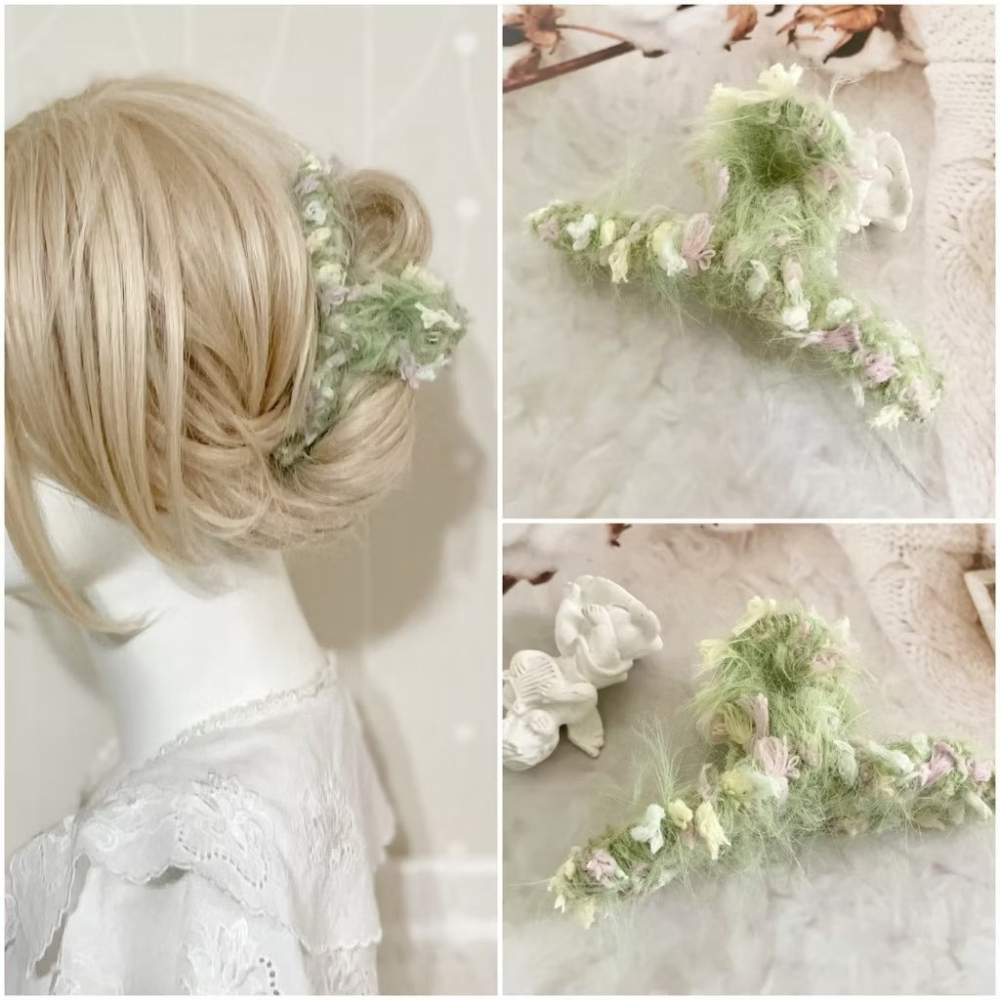 *哈娜髮飾*手工紗線髮夾 毛線鯊魚夾 抓夾 髮飾 飾品 新娘頭飾 盤髮 丸子頭 包頭 禮物 生日