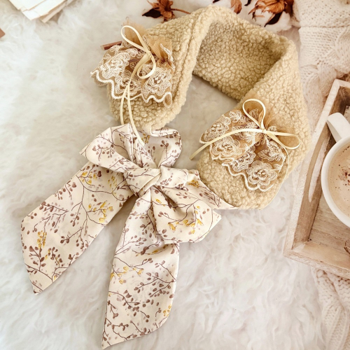 *哈娜髮飾*長版綁帶髮帶 杏膚 蕾絲頭巾 綁帶寬版頭帶 毛線 日系寬邊圍脖 髮飾 頭飾 領巾