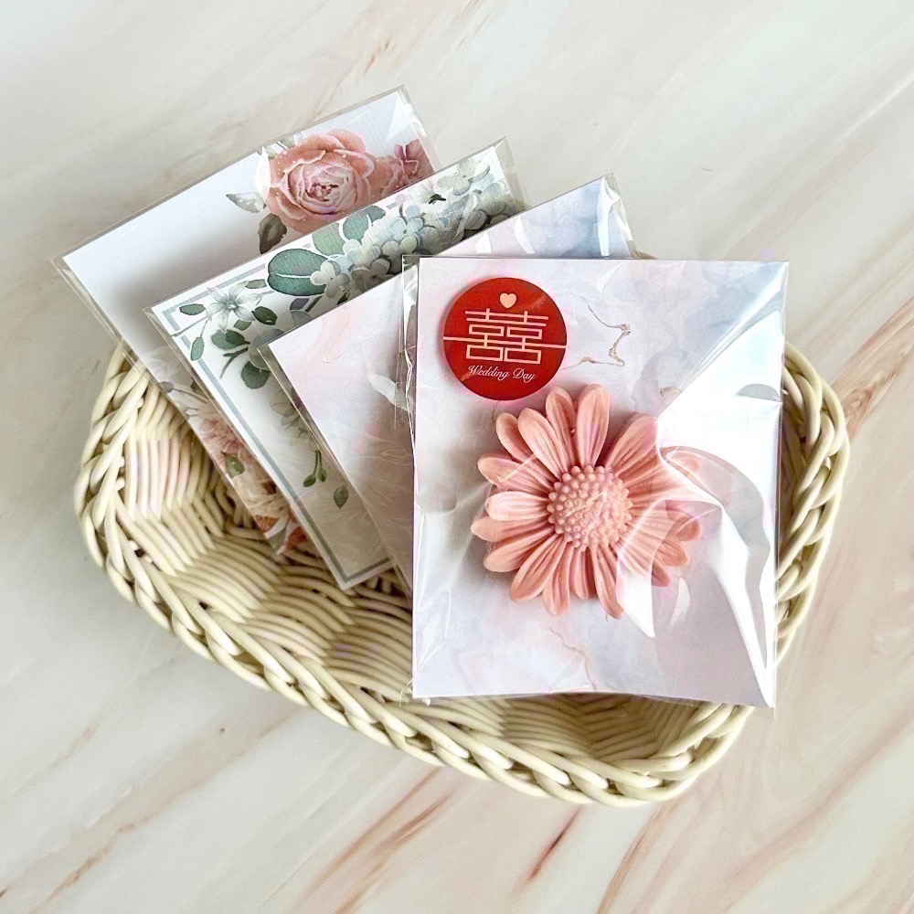 🌻包裝:透明OPP袋+背卡襯紙+囍字貼+成份標籤(背卡圖案隨機)。