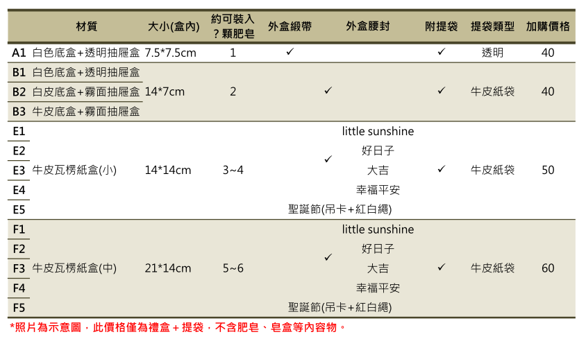 我挑了幾款肥皂,不曉得有禮盒包裝嗎?來這裡挑選喔!