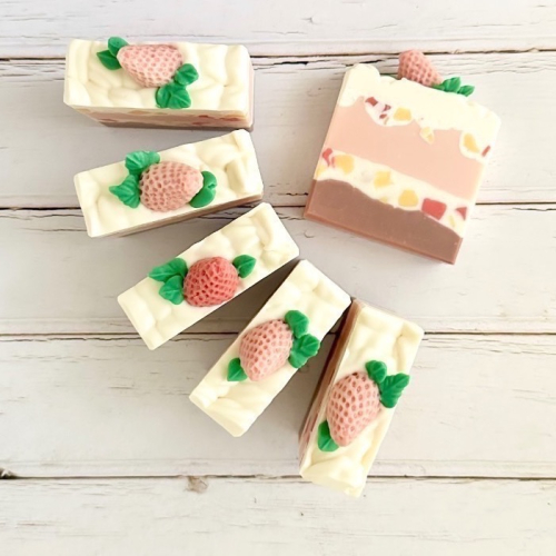 摩卡與草莓蛋糕體,舖上一層帶有莓果果乾的濃郁鮮奶油,享受愜意的沐浴時光吧!