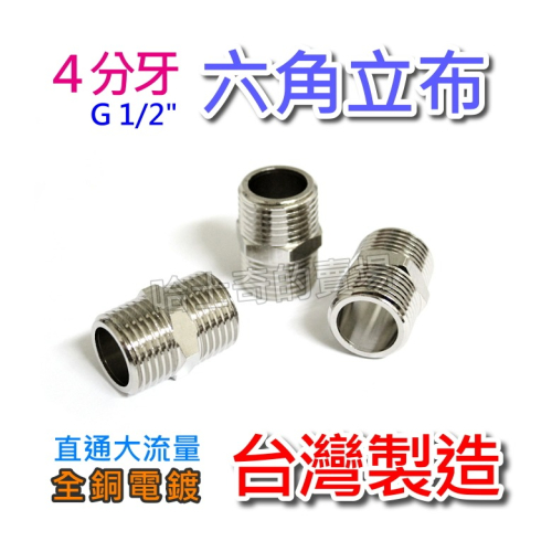 【台灣製造】立布 4分六角立布 接頭 1/2"雙外牙接頭 轉接頭 四分雙公接頭 雙接頭 六角外牙 銅立布 另件卜申