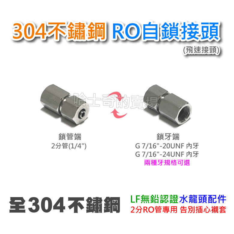 【無鉛認證】304不鏽鋼 2分 自鎖接頭 飛速接頭 RO接頭 不鬆脫 淨水器接頭 RO牙接頭 迫緊接頭 過濾器接頭 2分