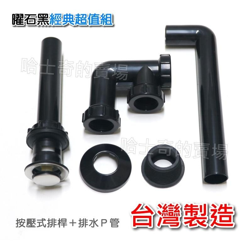 【極黑組合 台灣製造】按壓式排桿+P管 排水P管 排水 落水頭 壁排 排水管 臉盆排水 面盆排水組 排桿組 牆排 彈跳