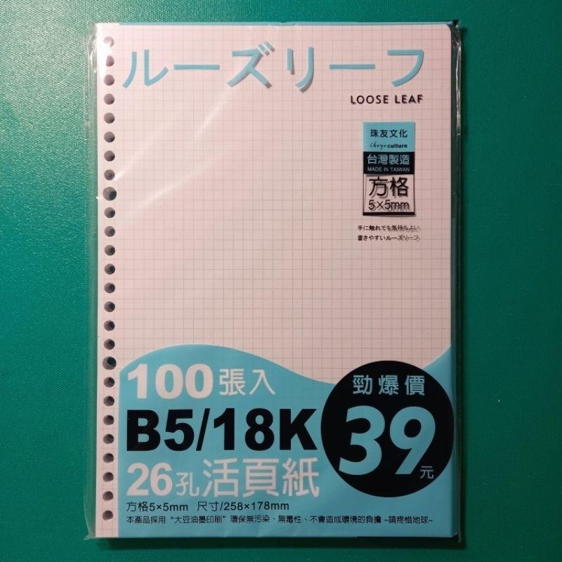 【全新】B5 26孔活頁紙 活頁本補充內頁紙 5×5mm方格