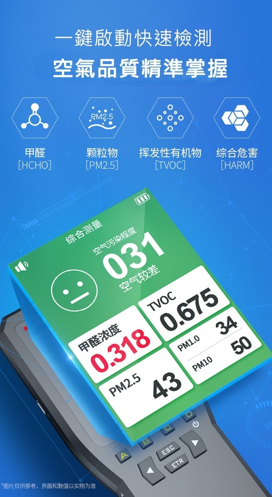 550機型 可測 甲醛、TVOC質量、PM2.5、PM10 PM1
