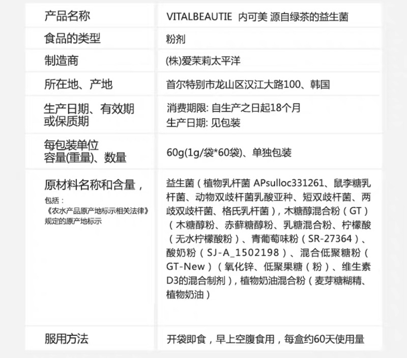 #韓國 #韓國代購 #韓國代買 #韓國直郵 #攜帶方便 #韓國原裝 #VITALBEAUTIE #바이탈뷰티 #愛茉莉 #內可美 #슬림VB綠茶片 #兒茶素 #升級改版款 #아모레퍼스픽 #一天一包 #綠茶乳酸菌 #回購NO1 #韓國最熱銷 #OliveYoung #小紅書推薦 #愛茉莉太平洋 #아모레퍼시픽 #AmorePacific #鐘根堂 #韓國鍾根堂 #益生菌 #益生菌 #乳酸菌 #健康 #身體平衡 #營養 #便秘 #粉末 #很好入口 #攜帶方便 #韓國原裝 #口感酸甜 #全年齡適用 #全家款益生菌