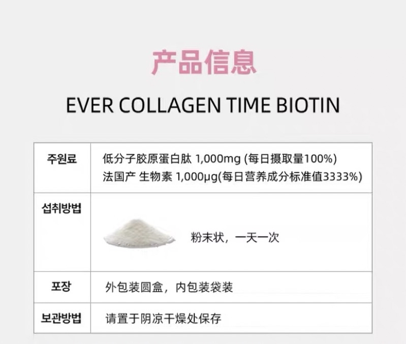 里面含有小分子膠原蛋白肽1000mg+生物素1000ug組合