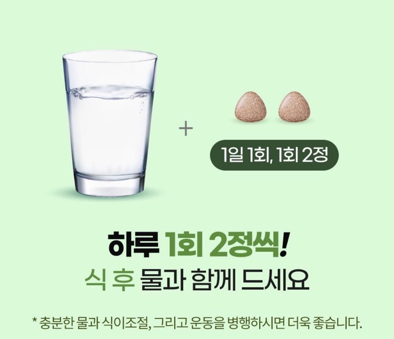 ✔️ 每日一次,每次2粒,"飯後"15-30分鐘內喝水服下即可。平日搭配飲食調整和適量運動,效果更佳。