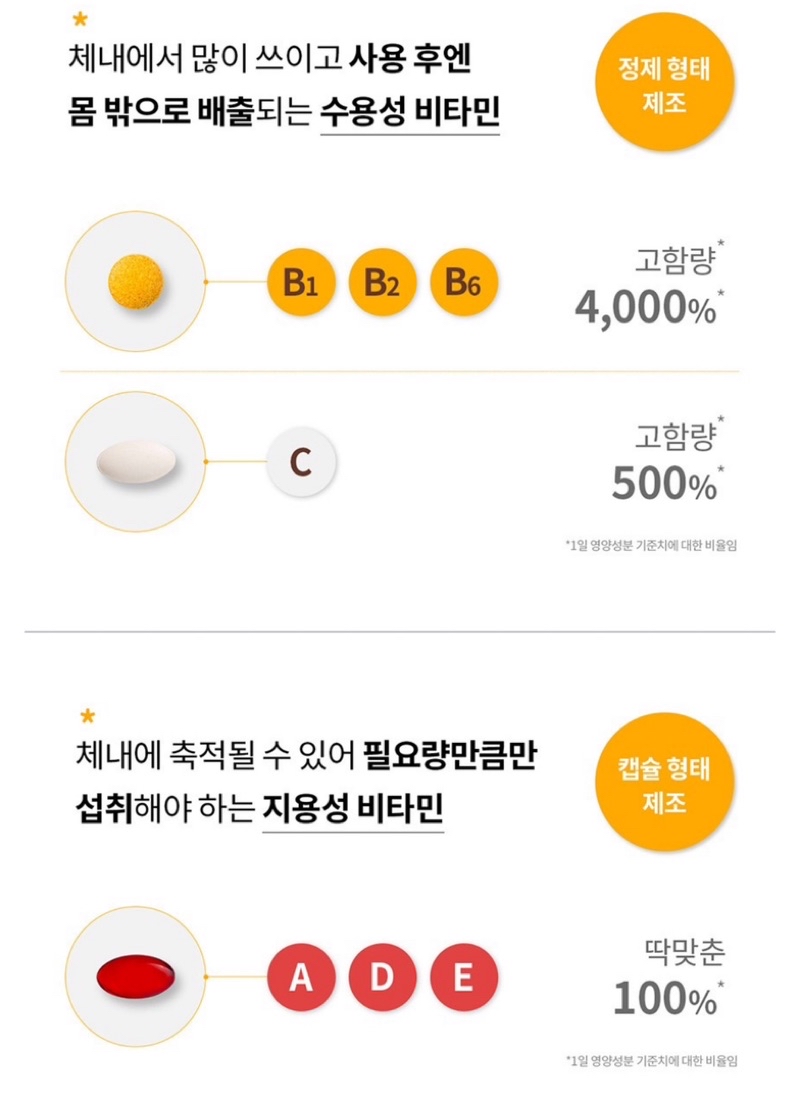 營養資訊:每日攝取量(1包:1,440毫克),熱量7大卡,碳水化合物1克(0%),蛋白質0克(0%),脂肪0.3克(1%),鈉0毫克(0%) ,維生素C 500 mg (500 %)、維生素B1 48 mg (4,000 %)、維生素B2 56 mg (4,000 %)、維生素B6 60 mg (4,000 %)、維生素A 700 µg RAE (100 %)、維生素D 100 µg (100 %) ) )、維生素E 11 mga-TE (100%) ※( )內的值為每日營養標準值的比例。
