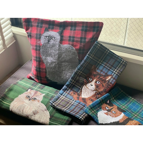 #松尾美雪 #MatsuoMiyuki #松尾ミユキ #動物插畫抱枕 #靠墊 #抱枕套 #提花織物 #Jacquard #ジャカード #布料 #軟墊 #坐墊套 #靠墊套 #抱枕 #波斯貓 #三花貓 #暹羅貓