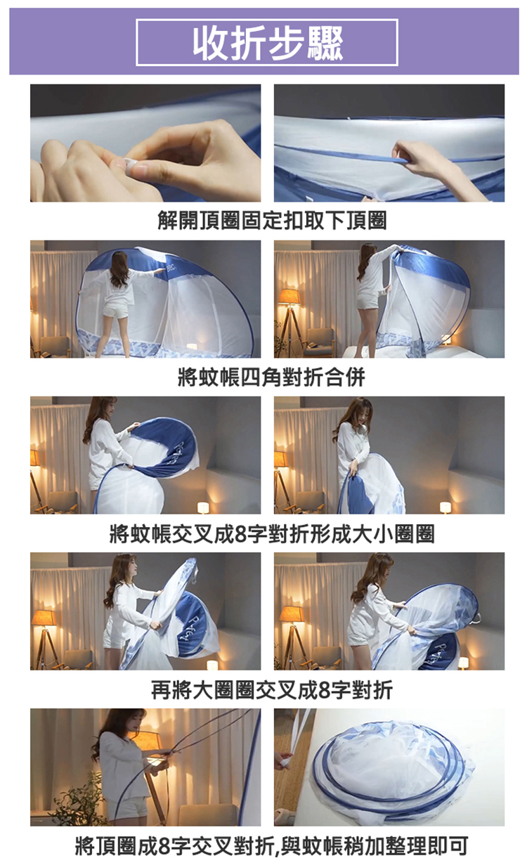 ⚠蚊帳收納後請放置至兒童無法拿取,避免發生危險。