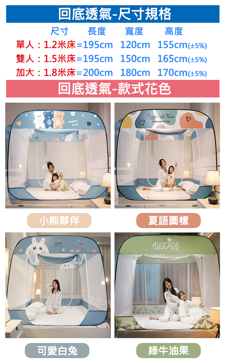 ⚠ 此款蚊帳是「全底款」底部整面都是有網紗的,所以不能接受請不要訂購。