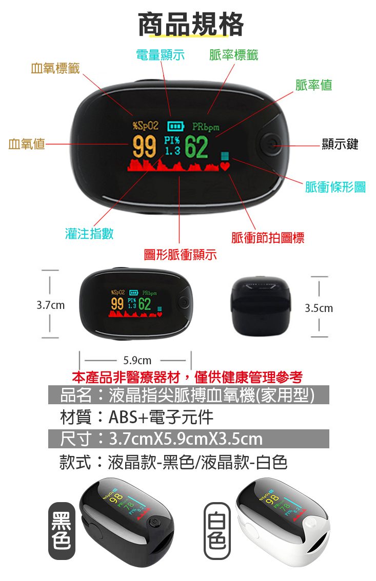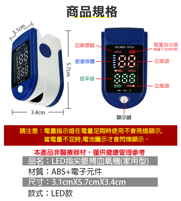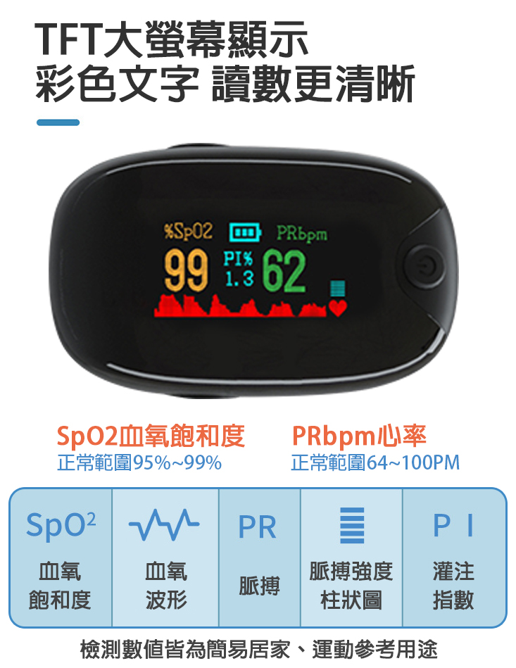 居家運動用指尖脈搏血氧機 血氧偵測儀 血氧機 血氧濃度計 偵測血氧濃度 非醫療用