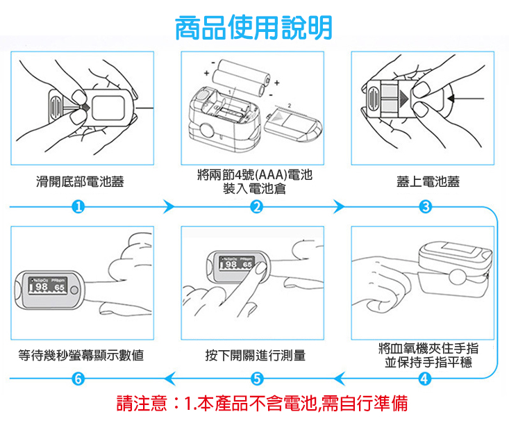 註3:加裝電池時,請注意正負級方向,血氧機與一般機器方向不一樣。