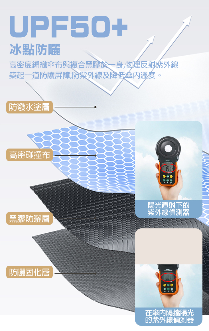材質/成份:傘布-黑膠塗層防水布,傘骨-玻璃纖維/黑鋼