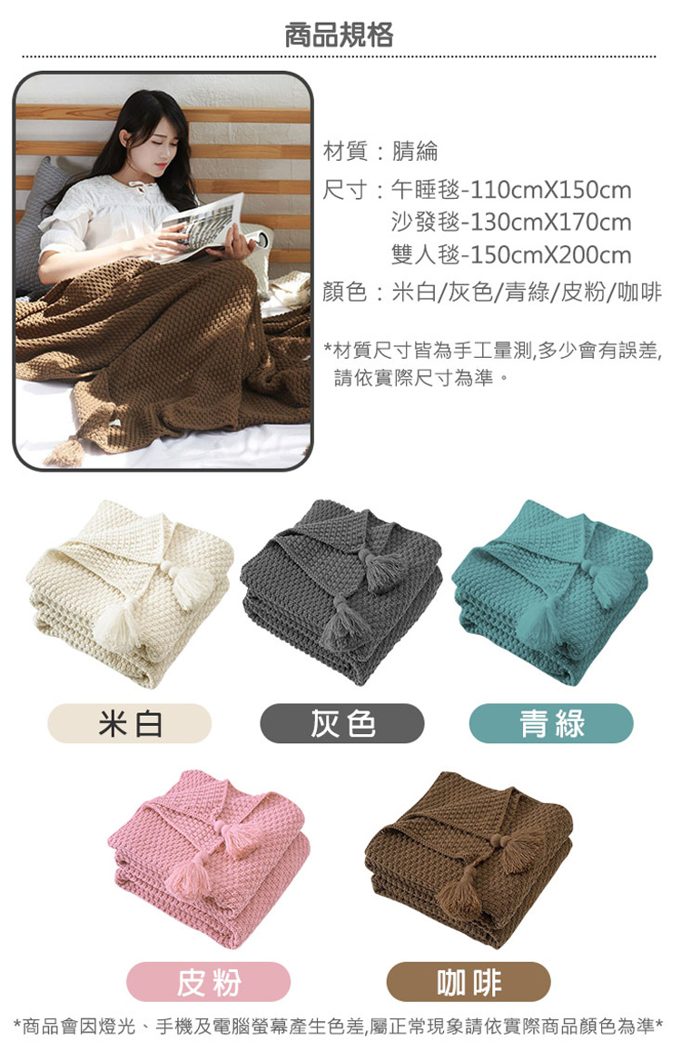 尺寸:午睡毯110x150cm / 沙發毯130x170cm / 雙人毯-150x200cm