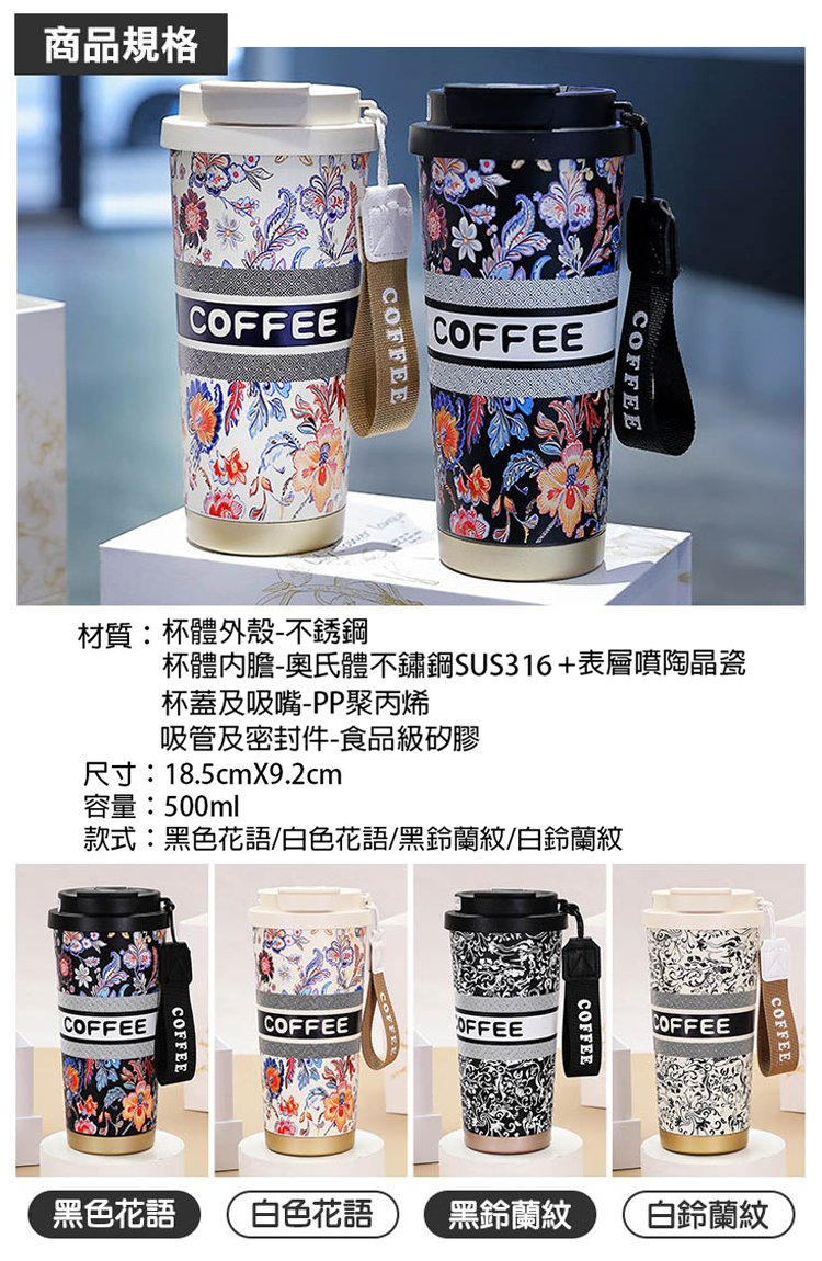 材質:杯體外殼-不銹鋼 / 杯體內膽-奧氏體不鏽鋼SUS316+表層噴陶晶瓷