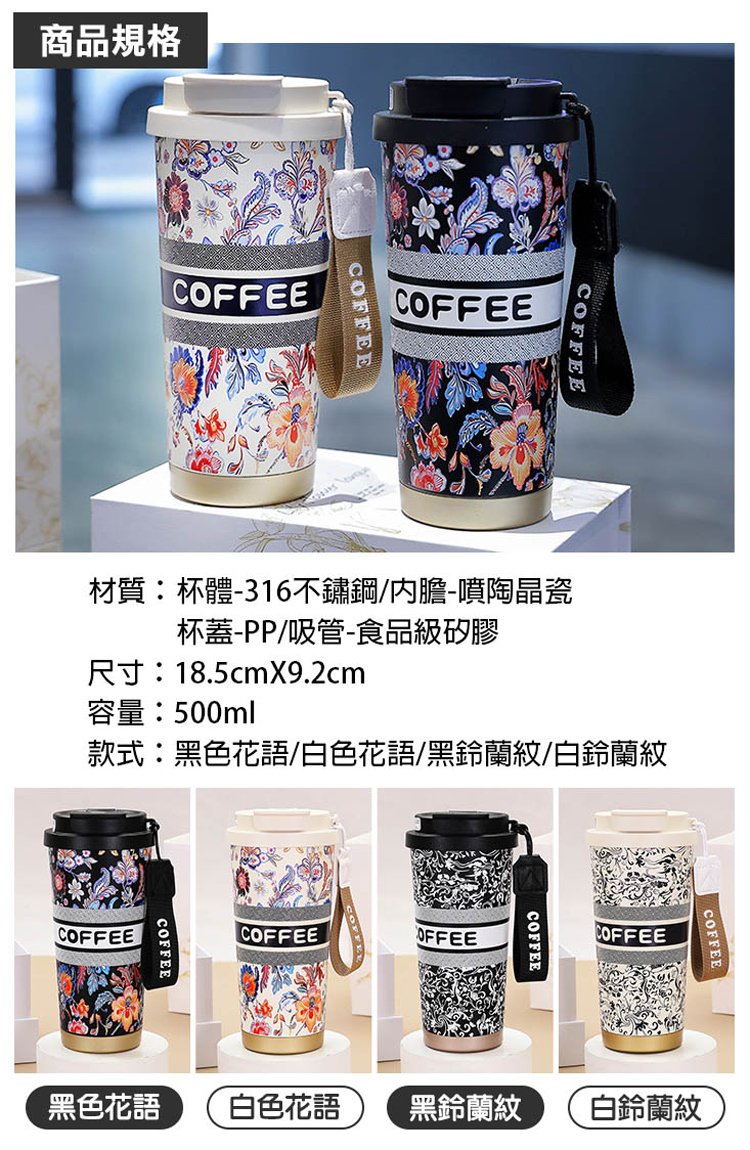 材質:杯體-316不鏽鋼 / 內膽-噴陶晶瓷 / 杯蓋-PP / 吸管-食品級矽膠