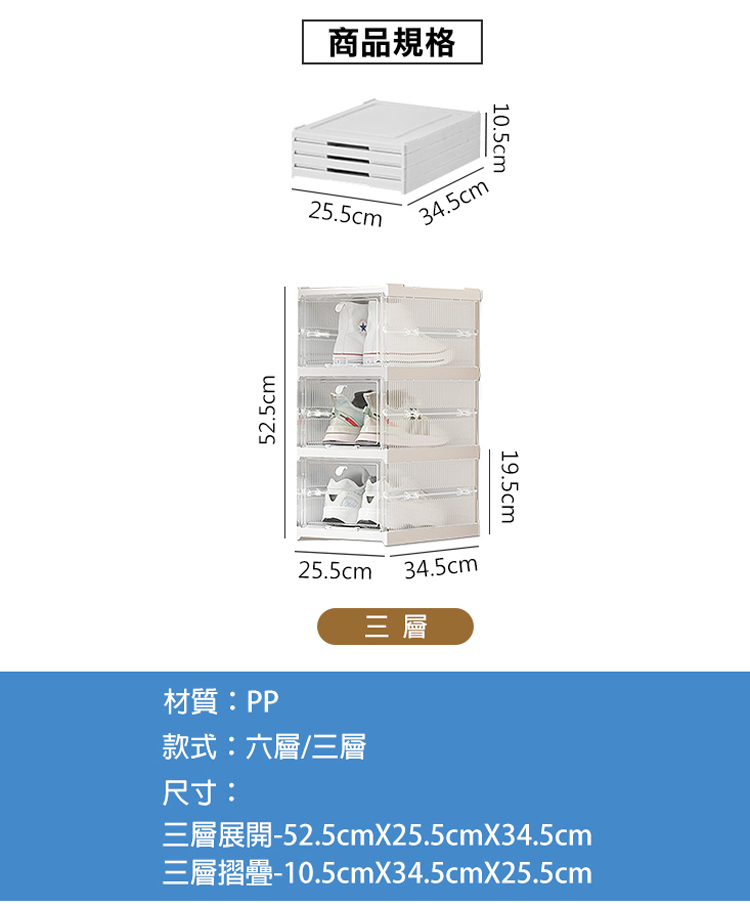 三層款尺寸/規格:摺疊時-10.5x34.5x25.5cm/展開時-52.5x25.5x34.5cm